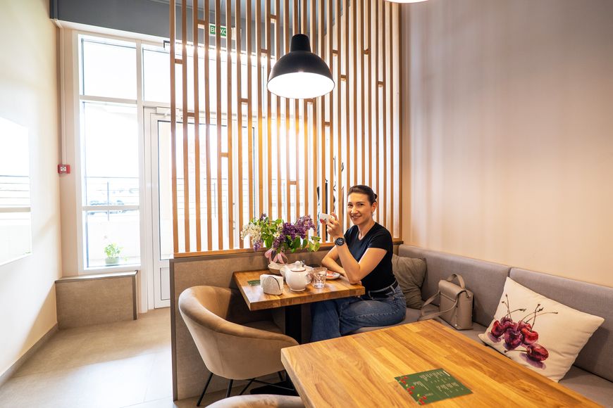 Нам было важно, чтобы точка роста нашего бизнеса была возле метро. Когда новая станция откроется проходимость увеличится. (прим.: открытие ст. м. "Аэродромная" запланирован на конец 2023, начало 2024 года). Нам очень нравится, что у нас есть терраса, мы планируем, ставить столики летом, чтобы люди могли посидеть на улице. Мы довольны нашим помещением!
