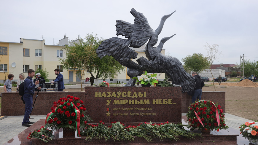 - Мы открыли мемориал Героям Беларуси - летчикам майору Андрею Ничипорчику и лейтенанту Никите Куконенко. Год назад в такой же майский день в свой последний полет ушли люди, влюбленные в небо. Сильные, смелые, настоящие патриоты и профессионалы своего дела. Они сделали выбор и ценой своей собственной спасли сотни жизней на земле. Самоотверженным поступком они вписали свои имена в историю нашего государства, оставив яркий след. Они стали в один ряд с теми людьми, которых мы чтим, помним, которыми гордимся, - отметил министр обороны Виктор Хренин.