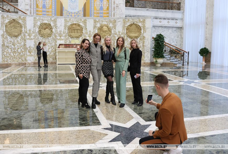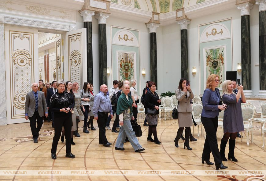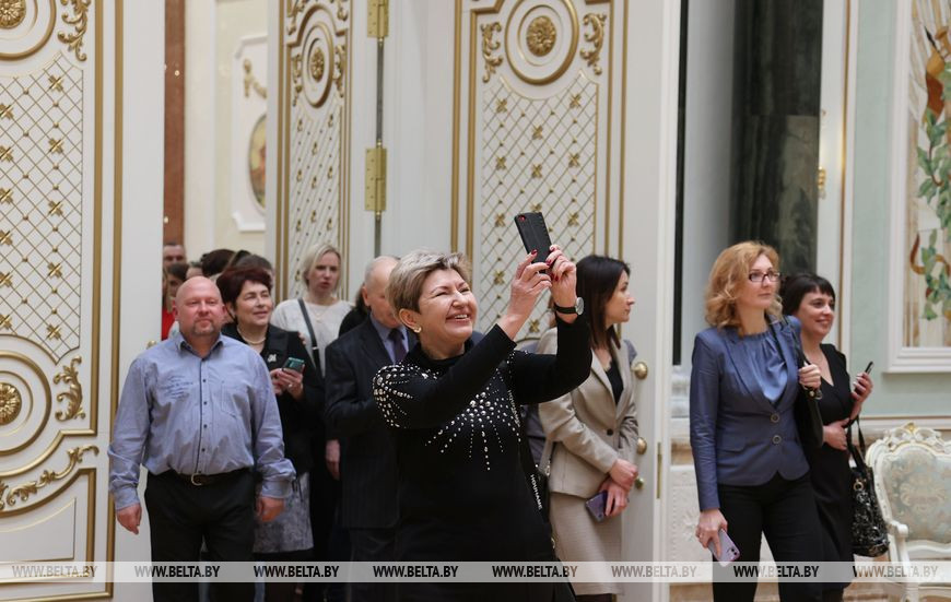В этот раз на экскурсии во Дворце Независимости побывали работники предприятия "Белмедтехника", женщины из персонала внутренних войск МВД, сотрудники Национальной школы красоты.