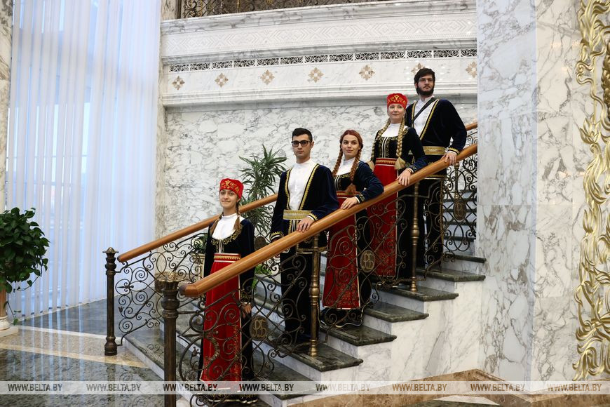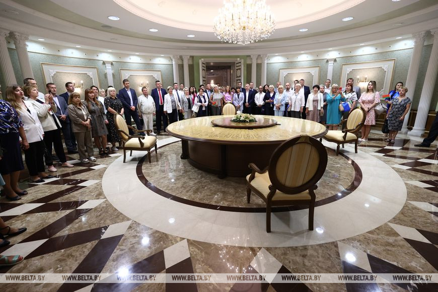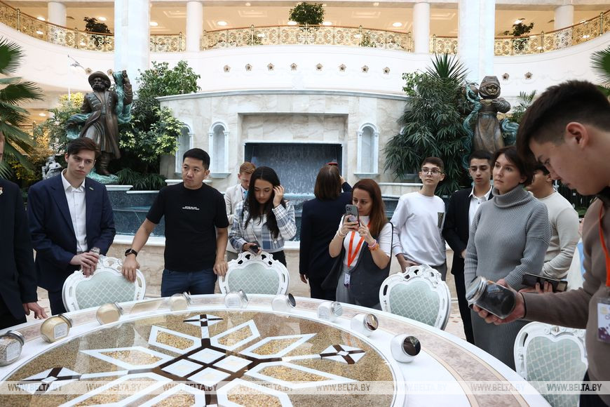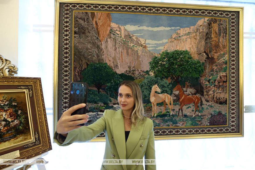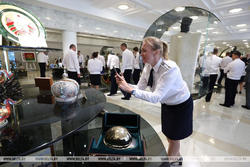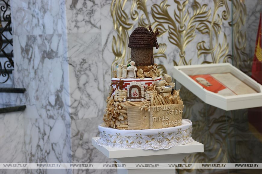 Более того, Дворец Независимости - это еще и экспозиционная площадка. На первом этаже представлена часть подарков от зарубежных лидеров и высоких гостей, регулярно проводятся выставки белорусских художников. А сейчас в числе экспонатов искусно выпеченные караваи из разных регионов Беларуси. Эти без преувеличения произведения кулинарного искусства стали одной из любимых фотозон для гостей дворца. На втором этаже - многочисленные фотографии различных лет, своего рода летопись международных встреч Александра Лукашенко. И каждый из зарубежных гостей ищет свое, для них все ново и интересно.-0-
