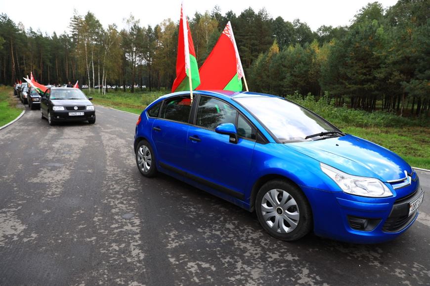ФОТОФАКТ: Автопробег "За единую Беларусь" стартовал от аквапарка "Лебяжий"