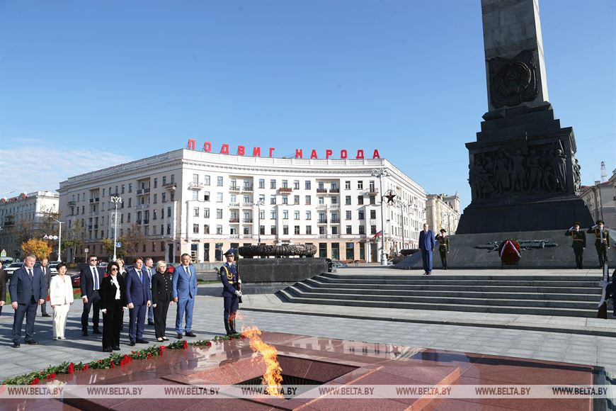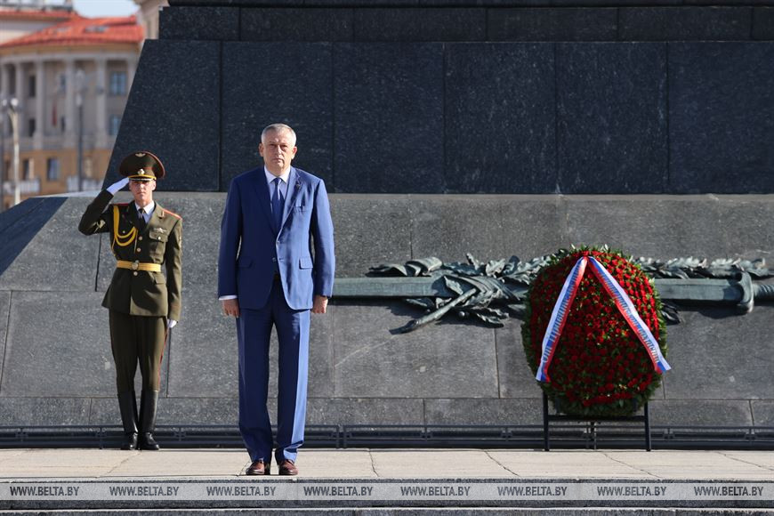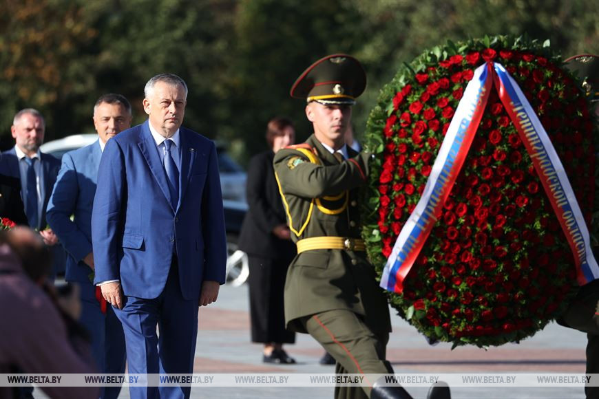 26 сентября, Минск /Корр. БЕЛТА/. Губернатор Ленинградской области Александр Дрозденко почтил память воинов, погибших в годы Великой Отечественной войны, и возложил венок и цветы к Вечному огню у монумента Победы в Минске.-0-