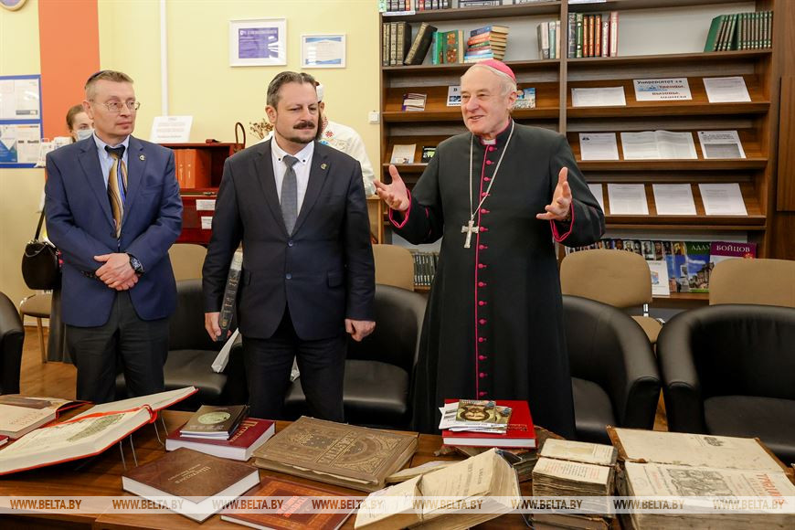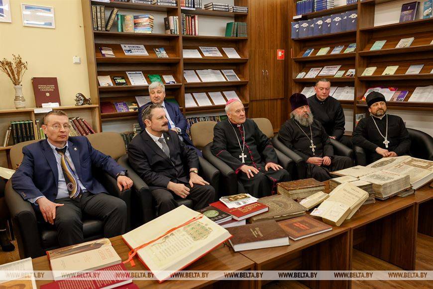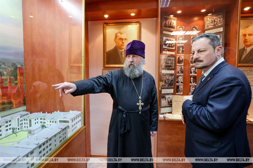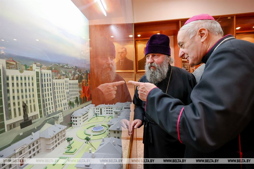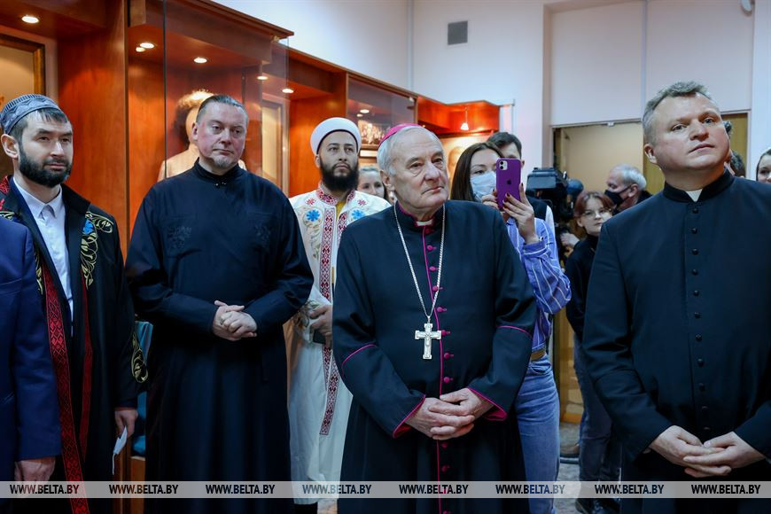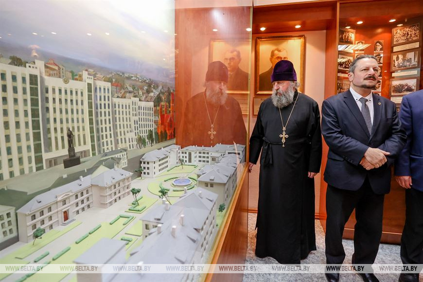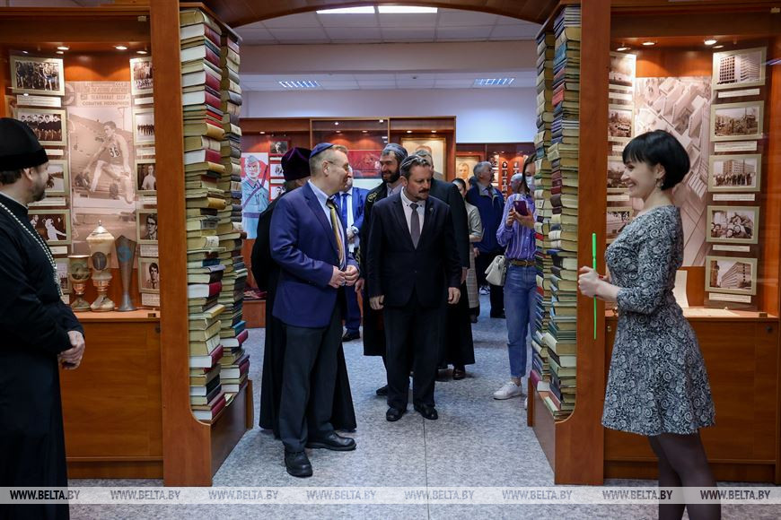 13 мая, Минск /Корр. БЕЛТА/. Это служители расположенных в Минске Соборной мечети, костела Матери Божьей Будславской, синагоги Бейс Исроэль, православного храма в честь иконы Божией Матери "Всех скорбящих Радость". Визит в БГУ прошел в рамках проекта "Год народного единства", который проводится в университете с марта текущего года. Представители конфессий встретились с руководством, преподавателями и студентами БГУ. Для гостей организовали экскурсионную программу. -0-