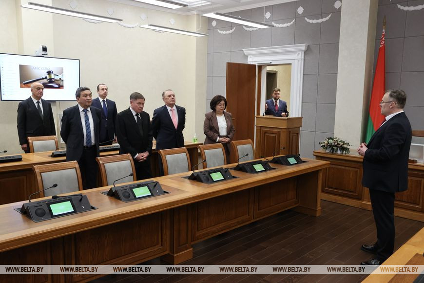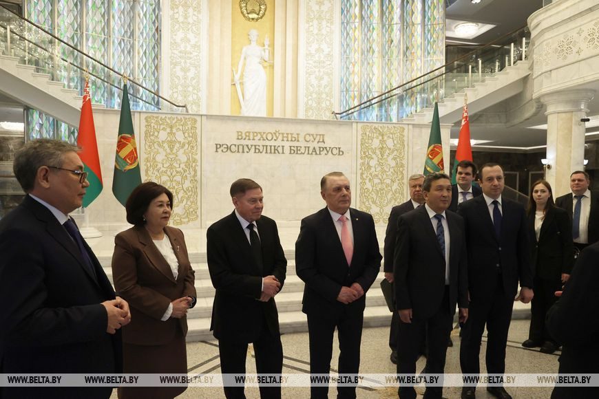 13 апреля, Минск /Корр. БЕЛТА/. Председатель Верховного Суда Республики Беларусь Валентин Сукало встретился с главами делегаций верховных судов Азербайджанской Республики, Республики Казахстан, Кыргызской Республики, Российской Федерации, Республики Таджикистан и Республики Узбекистан. Встреча прошла в рамках мероприятий, посвященных празднованию 100-летнего юбилея Верховного Суда. После руководители высших судов зарубежных государств посетили музей истории Великой Отечественной войны.-0-