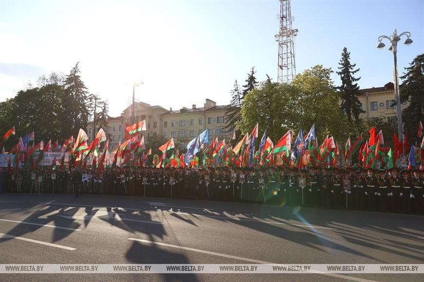 Он рассказал, что испытывает гордость, находясь в городе-герое Минске в таком знаковом месте. В том числе и потому, что в его семье есть люди, сражавшиеся с фашистами в годы Великой Отечественной войны: "По папиной линии - мой прадедушка Артем Лазаревич Соломонов, который дошел до Берлина, был разведчиком и вернулся обратно".