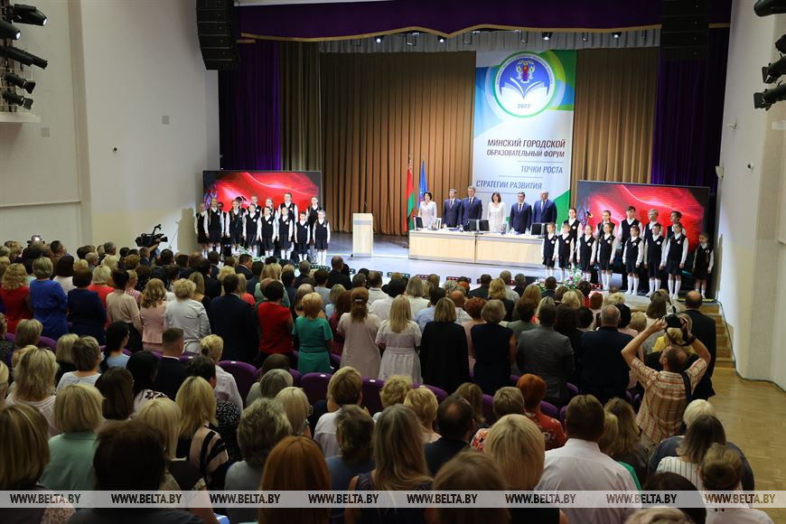 В Минске прошел городской форум педагогических работников "Столичное образование: точки роста и стратегии развития". Его целью стал анализ работы столичной системы образования за прошлый учебный год, определение приоритетных направлений совершенствования образовательного процесса в учреждениях образования, постановка задач на новый учебный год.-0-
