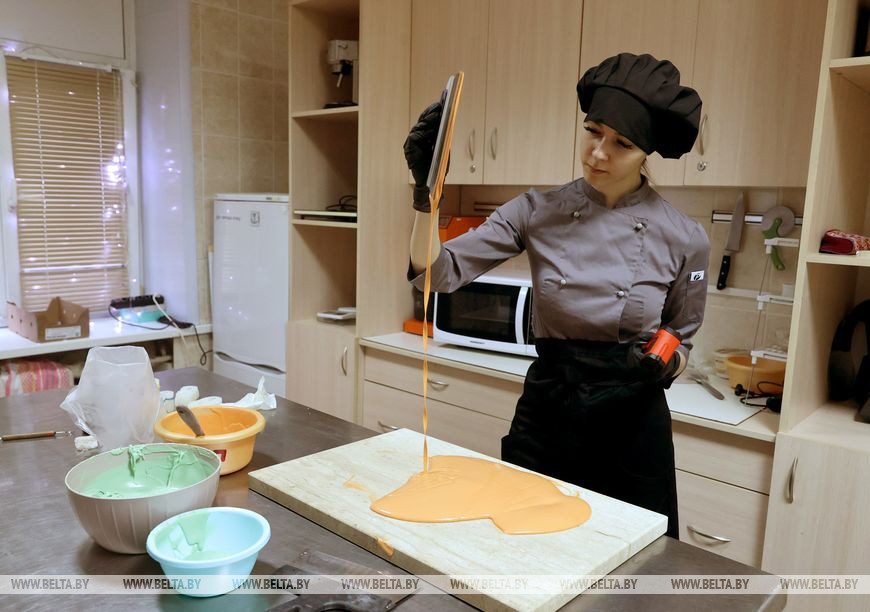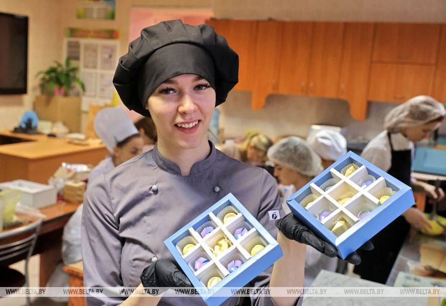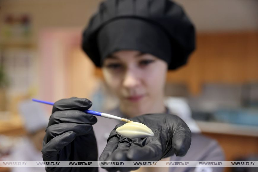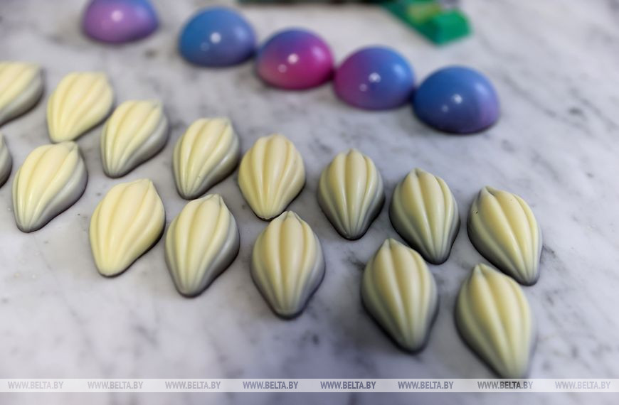 "В работе я использую итальянский и бельгийский шоколад, которые считаются лучшими, но в домашних условиях и для экономии можно использовать наш белорусский - он доступный и податливый в процессе приготовления. Можно брать как горький, так и молочный. Формочки для конфет можно использовать силиконовые или поликарбонатные. Самый главный инструмент при работе с шоколадом - это пирометр или контактный термометр, потому что шоколад нужно темперировать. Для темного шоколада рабочей считается температура в 31-32 градуса по Цельсию, белого - 30, молочного - 29-30. Это нужно для того, чтобы шоколад не стекал по рукам, правильно застывал и потом хрустел в готовых конфетах", - пояснила кондитер.