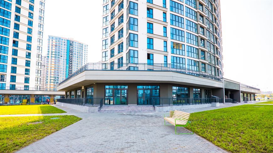 В доме "Аруба", как и в большинстве новостроек Minsk World, сквозной подъезд. Один из выходов ведет в сторону улицы и наземной парковки, а второй - на прилегающую территорию.