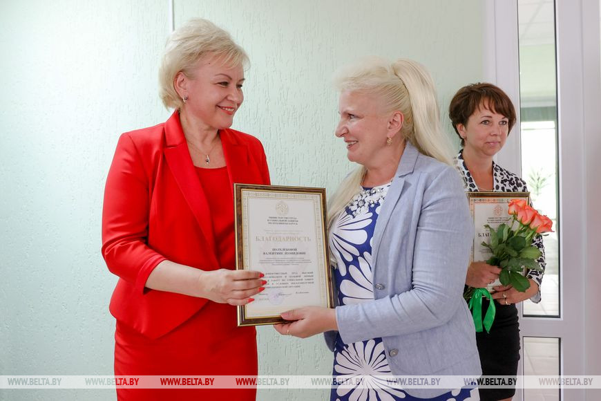 5 августа, Минск /Корр. БЕЛТА/. Министр труда и социальной защиты Ирина Костевич сегодня встретилась с работниками социальной службы Минска и волонтерами, чтобы поблагодарить их за добросовестный труд, высокий профессионализм и большой личный вклад в работу по социальной защите граждан в условиях неблагополучной эпидемиологической ситуации, передает корреспондент БЕЛТА.
