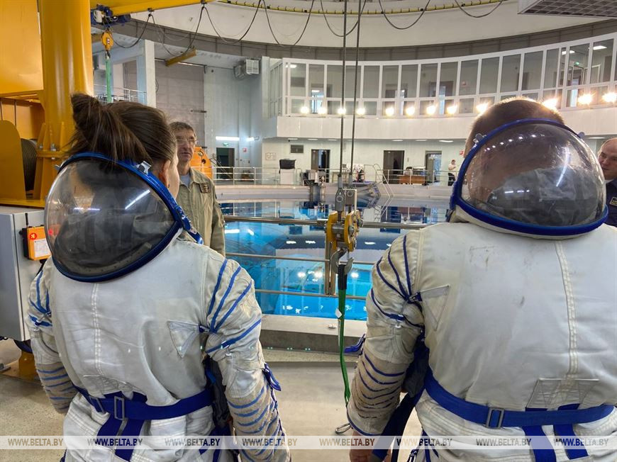 В тренировке принимают участие члены основного экипажа Марина Василевская вместе с космонавтом "Роскосмоса" уроженцем Беларуси Олегом Новицким (командир), а также члены дублирующего экипажа Анастасия Ленкова и космонавт "Роскосмоса" Иван Вагнер (командир).-0-