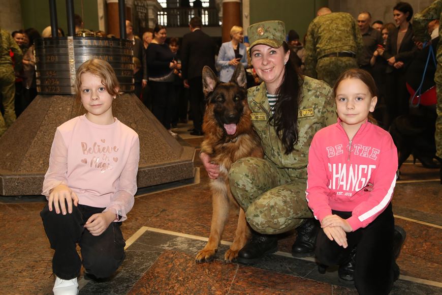 Мероприятие продолжилось выступлением вокальной группы ансамбля пограничной службы, а также показательными выступлениями специалистов кинологического центра ГПК.