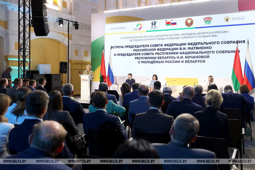 Председатель Совета Федерации Валентина Матвиенко и председатель Совета Республики Наталья Кочанова на полях XII Форума регионов Беларуси и России в Нижнем Новгороде проводят встречу с представителями молодежи России и Беларуси.