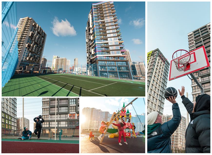 Квартал "Эмиратс" готов. Дом "Волна" приглашает оценить все преимущества "15-минутного города". Спуститесь на 1 этаж - и вы окажетесь в кафе или магазине, банке, на площадке для игр, воркаута, развлечений с детьми и домашними любимцами.