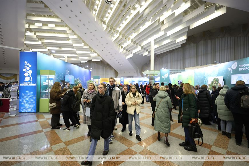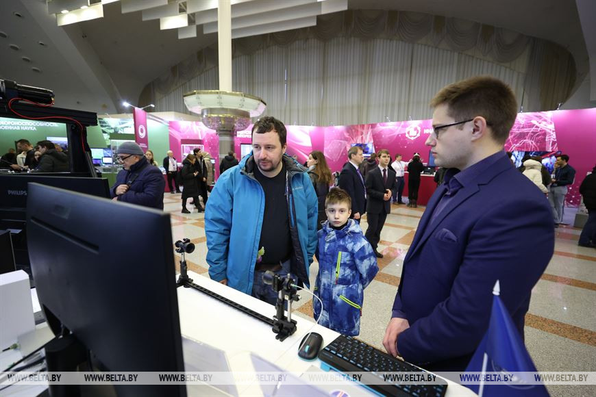 Выставка научно-технических достижений "Беларусь интеллектуальная" проходит в Минске. Свои достижения и разработки демонстрируют ученые НАН Беларуси, представители учреждений образования, научно-исследовательских государственных и частных организаций страны, технопарков, которые занимаются научными исследованиями. Также на выставке представлено более 400 экспонатов. Среди них натурные образцы (в том числе крупногабаритная техника), макеты, мультимедийные презентации на больших экранах.