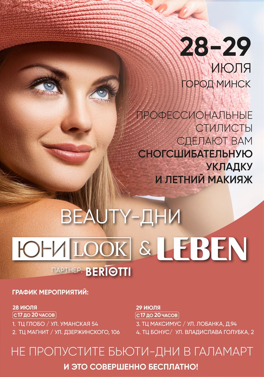 Сменить имидж к лету, сделать яркий или нежный мейк-ап, узнать секреты красоты… Народный магазин "Галамарт" устраивает бьюти-дни в Минске для всех желающих, а помогут в этом бренды LEBEN, производитель техники для комфортной жизни, и ЮниLook, в обширном ассортименте которого – целое созвездие товаров: инструменты для красоты, трендовые аксессуары, уходовая и декоративная косметика.