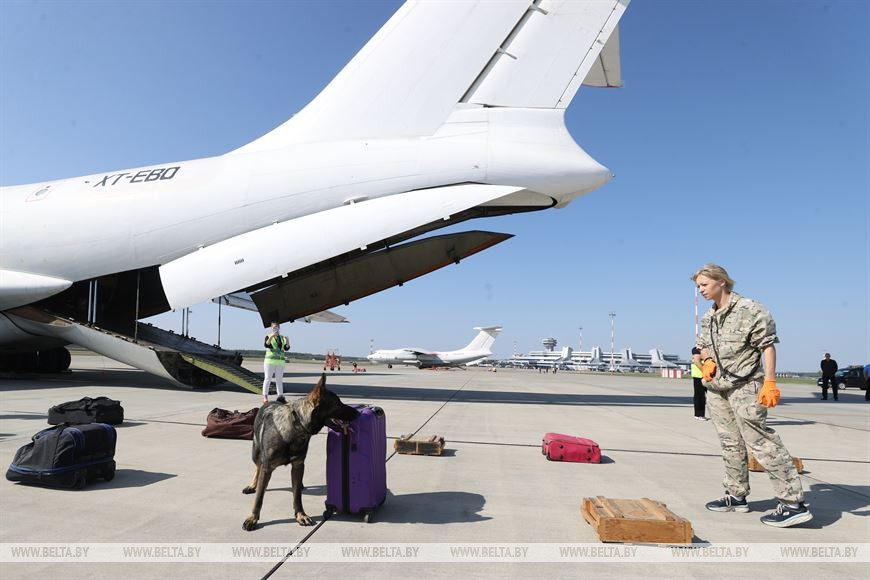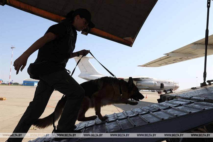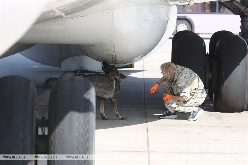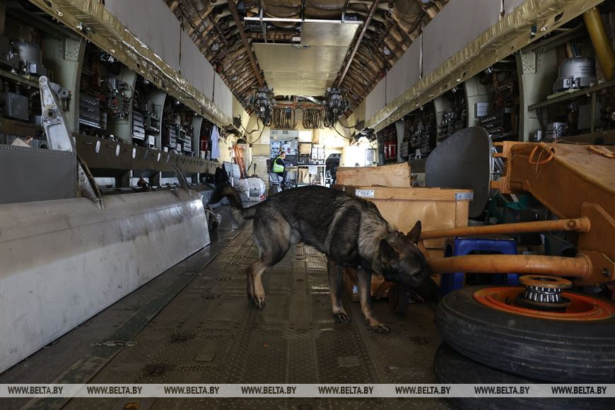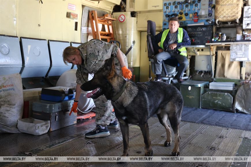 "Для работы организованы две площадки. На одной кинологи со служебными собаками отрабатывают поиск наркотических средств, на другой - взрывчатых веществ. Для большинства собак грузовой самолет является нетипичной площадкой для работы. Думаю, это будет интересным опытом. Чтобы осмотреть большой "Ил", нужно иметь определенный навык", - рассказала начальник кинологического подразделения Службы авиационной безопасности Юлия Гринкевич.