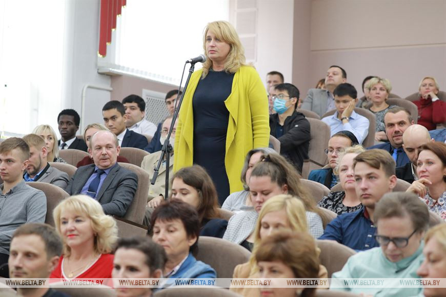 Во время встречи с коллективом Могилевского государственного университета Игорь Сергеенко заслушал доклады деканов факультетов. В структуру университета входят 7 факультетов: историко-филологический, математики и естествознания, педагогики и психологии детства, начального и музыкального образования, физического воспитания, экономики и права, иностранных языков. На данный момент здесь обучаются более 4,5 тыс. студентов. Деканы факультетов рассказали о готовности к началу учебного года, об обеспеченности студентов общежитиями. "Поговорили со студентами, руководителями общественных объединений. Увидели, что проблемных вопросов, которые требуют вмешательства руководства, здесь нет. У всех хороший настрой, чтобы учить и учиться, созидать и развиваться. И это радует", - подчеркнул глава Администрации Президента.