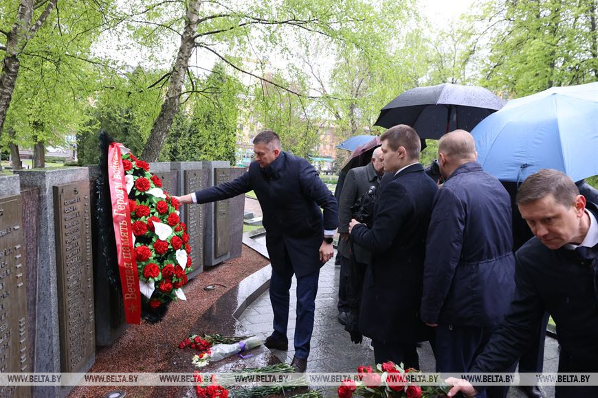 "День Победы - святой и светлый праздник. Мы помним и чтим всех, кто воевал и отдал жизнь за нашу Победу. Мы скорбим по всем тем, кто не вернулся с войны. Также мы благодарны всем людям, которые восстанавливали народное хозяйство, фабрики, заводы после Великой Отечественной войны. Это и Минский тракторный завод, БЕЛАЗ, МАЗ - все это послевоенные проекты, которые реализовали советские люди. Они работали по 18 часов в сутки, чтобы быстрее вернуться к мирной жизни", - сказал Петр Пархомчик.