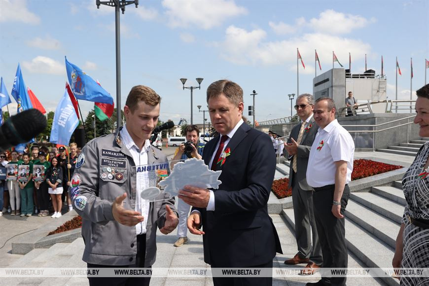 "Стало доброй традицией ежегодно на площади Государственного флага торжественно давать старт третьему трудовому семестру. В знаковый 2021 год - Год народного единства - особое значение приобретает смысл студотрядовского движения - единство в труде. Это наглядно подтверждает сплоченность нашей молодежи в решении важнейших для страны задач, - сказал Игорь Петришенко, обращаясь к молодежи. - Нынешний трудовой семестр проходит в год трагической для Беларуси исторической даты - 80-летия со дня начала Великой Отечественной войны. И то, что каждый ваш отряд носит имя Героя Советского Союза или участника войны, - яркий пример памяти и уважения к тем, кто отстоял свободу и независимость нашей родной страны, дал возможность жить и трудиться под мирным небом. Это также и ответственность каждого из вас - сделать добросовестным трудом нашу Беларусь еще краше и лучше".