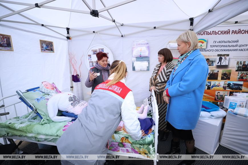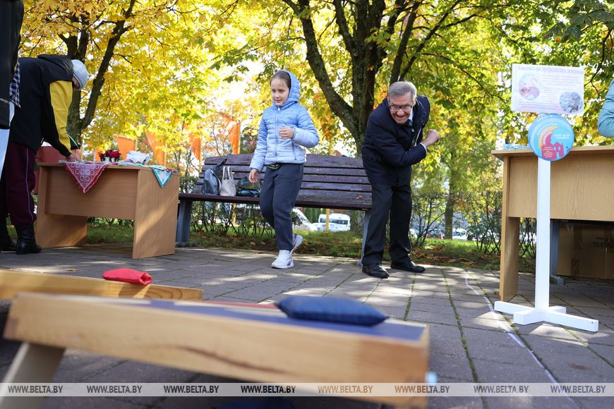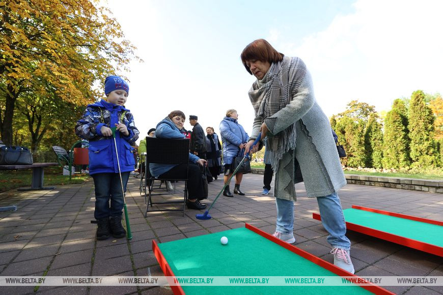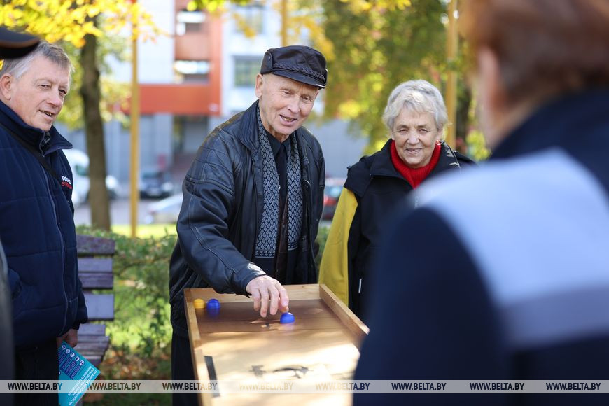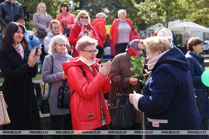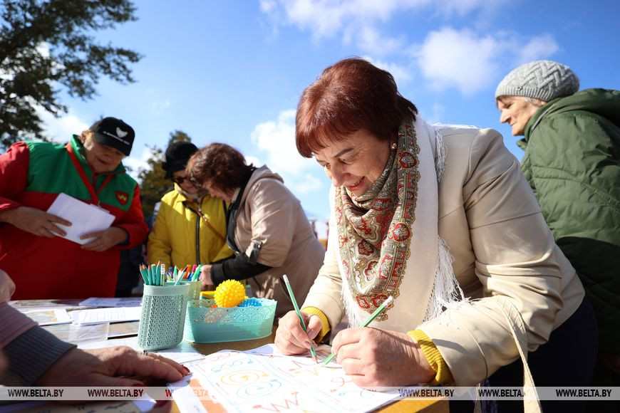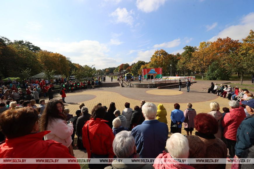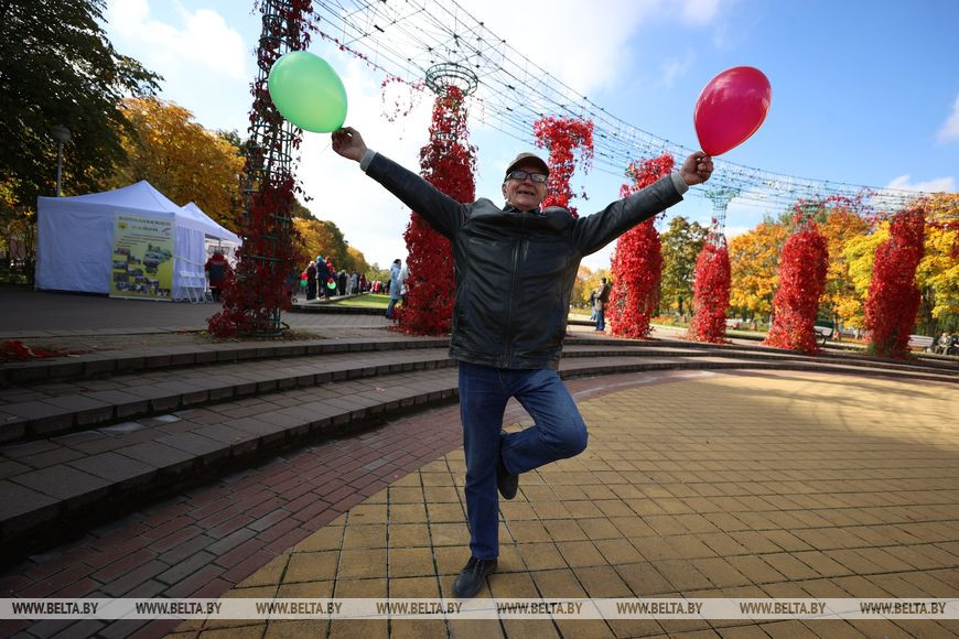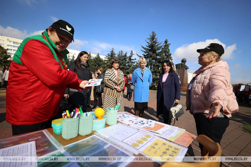Представители Минтруда и Мингорисполкома также посетили масштабное мероприятие ко Дню пожилых людей в парке "Четырех стихий", где развернулись интерактивные площадки "Мудрость. Опыт. Безопасность", "Жить здорово", "Добрых рук мастерство", "В мире равных возможностей" и "Добру все возрасты покорны". Все 23 районных территориальных центра социального обслуживания населения Минской области продемонстрировали деятельность, в которую вовлекаются пожилые люди, - это спортивное, художественное, танцевальное и кулинарное направления, игры для профилактики деменции, разработки для безбарьерной среды и другие. Одновременно с этим работала и танцевальная площадка, где пожилые люди организовали праздничный танцевальный флешмоб "Мелодии души".