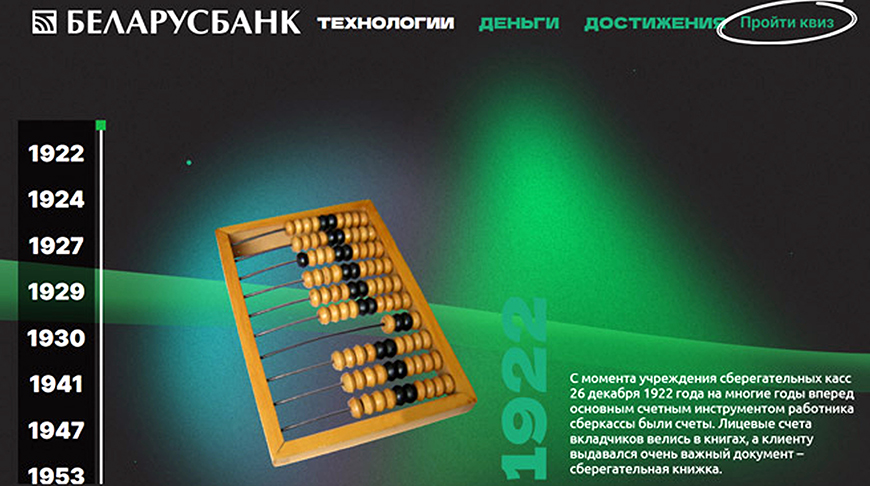 Теперь же, чтобы поближе познакомить белорусов с самыми значимыми достижениями банка и финансовой системы страны за прошедшее столетие, Беларусбанк запустил интерактивный сайт, посвященный развитию финансово-кредитного учреждения.