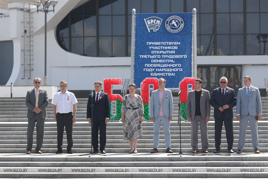26 июня, Минск /Корр. БЕЛТА/. В Минске на площади Государственного флага сегодня состоялось республиканское открытие третьего трудового семестра - 2021, передает корреспондент БЕЛТА.