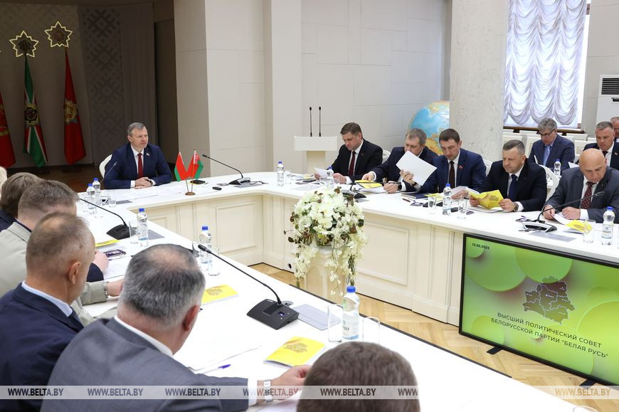 Сегодня в Минске прошло первое заседание Высшего политического совета Белорусской партии "Белая Русь". На повестку были вынесены вопросы о создании региональных отделений партии, утверждении плана работы Высшего политического совета, определении количественного состава и избрании президиума Высшего политического совета партии, символике партии и образце партийного билета.