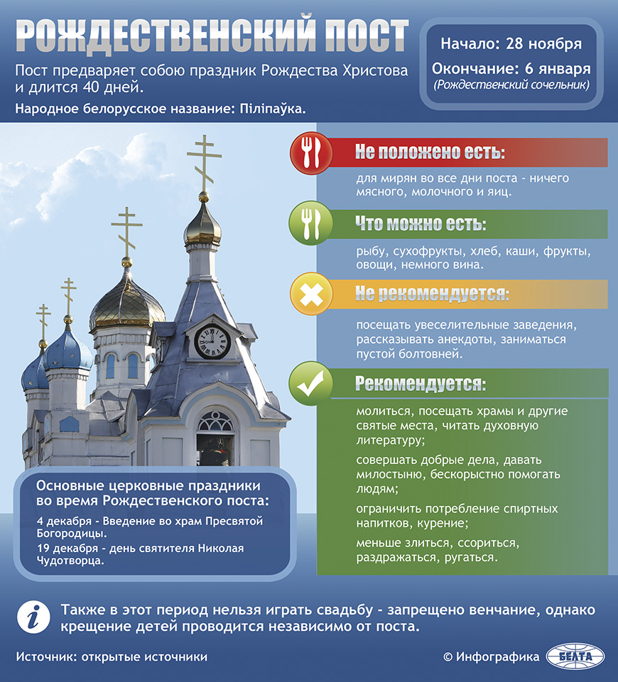 28 ноября, Минск /Корр. БЕЛТА/. У православных верующих сегодня начинается один из четырех многодневных постов - Рождественский пост, который готовит верующих к светлому празднику Рождества Господа Иисуса Христа.