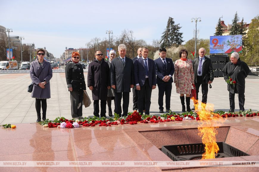 Вместе с сотрудниками аппарата уполномоченного по делам религий и национальностей возложили цветы к монументу Победы в Минске представители Минского городского армянского культурно-просветительского общества "Айастан", Белорусской цыганской диаспоры, общественных объединений "Русь", "Татаро-башкирское культурное наследие "Чимша", "Ассоциация белорусских корейцев", "Афганская община", Союза белорусских еврейских общественных объединений и общин.