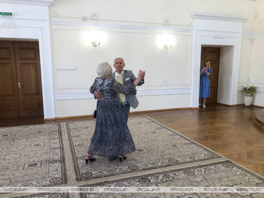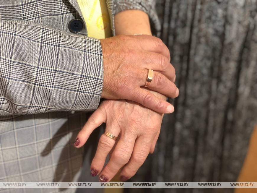 Церемония по случаю 50-летнего юбилея совместной жизни прошла в ЗАГСе очень красиво и трогательно. Здесь было все - признания в любви, слезы радости и нежные взгляды, шампанское и первый танец. Торжество проводила главный специалист отдела ЗАГС Могилевского горисполкома Марина Лукашева, которая была впечатлена общением со столь любящей парой. "Супруги, которые хотят отметить золотой юбилей такой церемонией, действительно счастливо прожили совместную жизнь, - уверена она. - Такую дату нужно праздновать, нельзя ее оставлять только для своей семьи - об этом должны знать люди, ведь это тоже элемент воспитания нашей молодежи в лучших традициях. Глядя на них, молодые супруги будут тянуться к таким же высоким чувствам и взаимопониманию".
