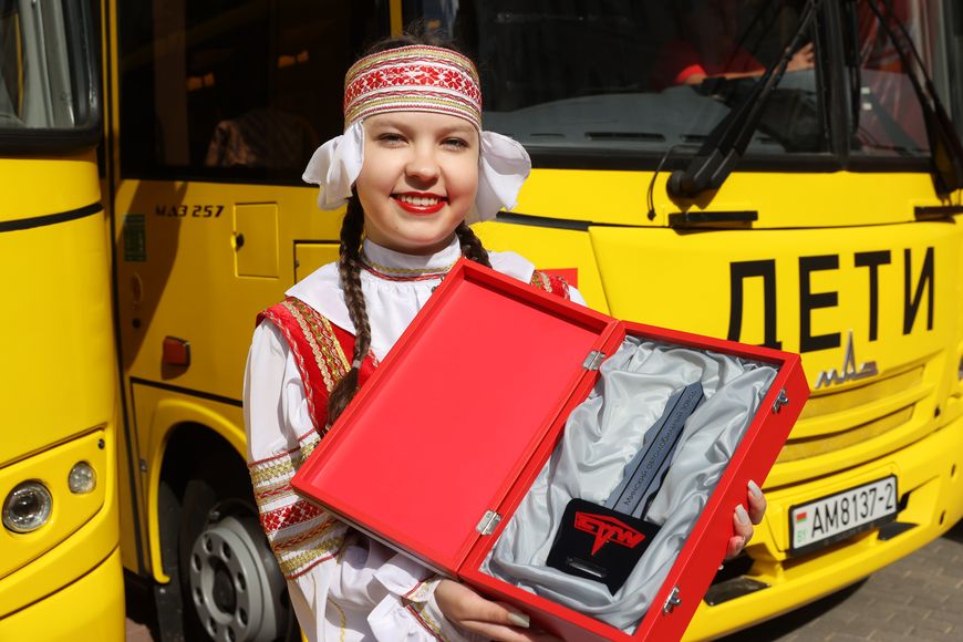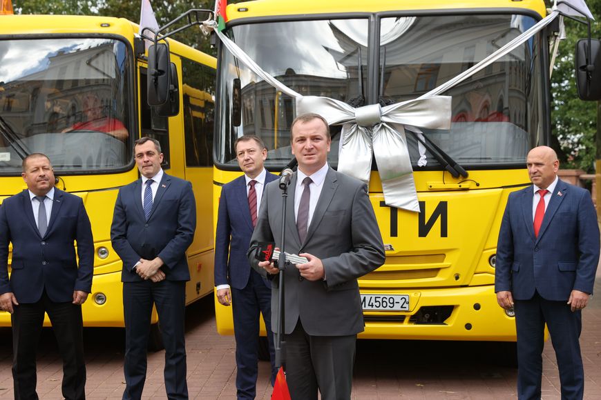 Он также добавил, что обновление автопарка не только помогает системе образования, но и для родителей является знаком заботы о подрастающем поколении. "Мы все мамы и папы, и когда наши дети - не важно, в сельской местности или в городе - садятся в комфортный автобус и доезжают безопасно до школы, то мы спокойны за них. Наш завод каждые год-два дорабатывает модели автобусов, мы прислушиваемся к потребителям, службам, которые контролируют безопасность нашей работы. Все это для того, чтобы школьники чувствовали себя комфортно и уверенно. Дорогие ребята, вы отправитесь за знаниями, которые вам дадут хорошие учителя. И в будущем из вас получатся квалифицированные инженеры, конструкторы, которых мы будем ждать на Минском автомобильном заводе", - подчеркнул гендиректор ОАО "МАЗ".