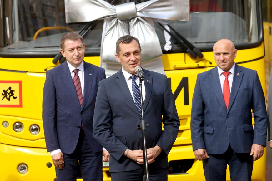 Витебская область стала первой в республике, куда отправились новые, уже узнаваемые всеми желтые автобусы для подвозки детей в школы. "Это большая программа, предусмотренная главой государства, по обеспечению всех регионов школьными автобусами. Мы поставили 130 автобусов школам Беларуси. Комфорт и безопасность детей - это главные критерии, которые ставит во главу угла Президент нашей страны, поэтому в наших автобусах предусмотрены элементы безопасности при эксплуатации автотехники, в них установлены комфортные сидения", - отметил генеральный директор ОАО "МАЗ" - управляющей компании холдинга "БЕЛАВТОМАЗ" Валерий Иванкович.