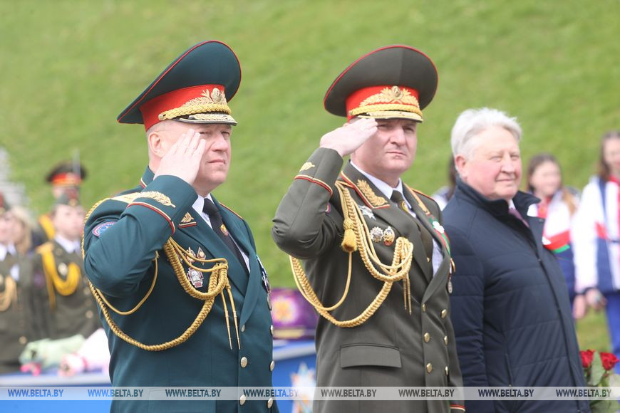 "Для всех людей, которые живут на этой земле и когда-то общались с ветеранами, более святого праздника просто быть не может. А ведь многих ветераны учили, у многих родственники принимали участие в Великой Отечественной войне. И сегодня мы собрались здесь, у Кургана Славы, славы Красной армии и всего белорусского народа, людей, которые погибли, защищая свою Родину. Мы должны сделать все возможное, чтобы в будущем на нашей священной, политой кровью земле никогда не возникало никаких конфликтов", - сказал Вадим Синявский. Он также считает, что для этого нужно знать уроки истории, созидать, честно трудиться и выполнять свои задачи как человека и гражданина.-0-