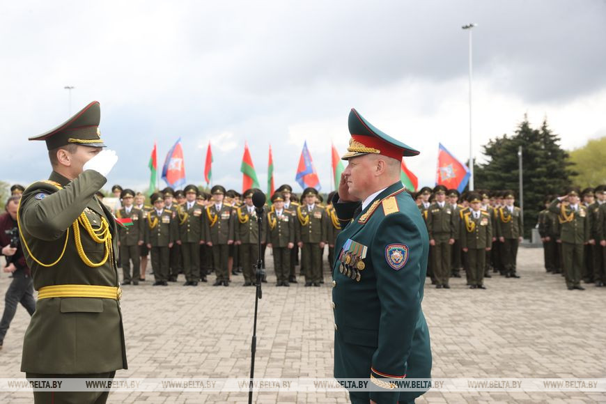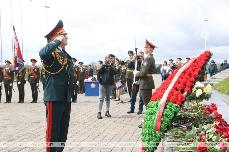 На Кургане Славы состоялось торжественное мероприятие, приуроченное ко Дню Победы. В нем приняли участие руководство и представители Министерства по чрезвычайным ситуациям, Университета гражданской защиты, курсанты, а также члены военно-патриотического клуба "Зубр". Спасатели почтили память воинов-освободителей и возложили цветы к мемориальной доске Кургана Славы. Вадим Синявский также вручил государственные награды и специальные звания работникам МЧС.