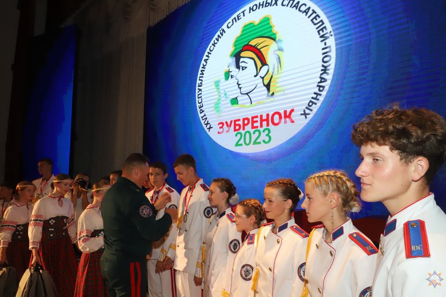 В церемонии закрытия и награждении победителей принял участие и министр по чрезвычайным ситуациям Вадим Синявский. Глава спасательного ведомства поблагодарил ребят за их активную жизненную позицию. "Слет юных спасателей-пожарных - венец подготовки ребят на протяжении всего года. Они участвуют в районных испытаниях, потом в областных, и после этого формируются команды, которые соревнуются за звание лучших спасателей-пожарных в "Зубренке". Ребята учатся здесь очень многому. Они осваивают элементы пожарно-спасательного спорта, преодолевают полосы препятствий, участвуют в конкурсах", - сказал Вадим Синявский.