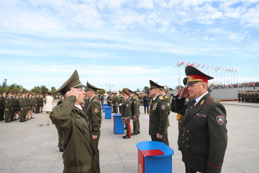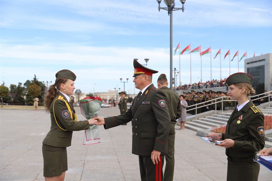 Торжественная церемония прошла на площади Государственного флага. Присягнули на верность Родине и белорусскому народу 148 будущих спасателей, из которых 10 девушек.-0-