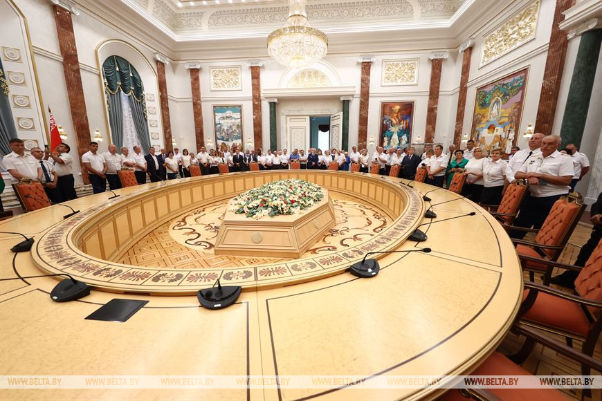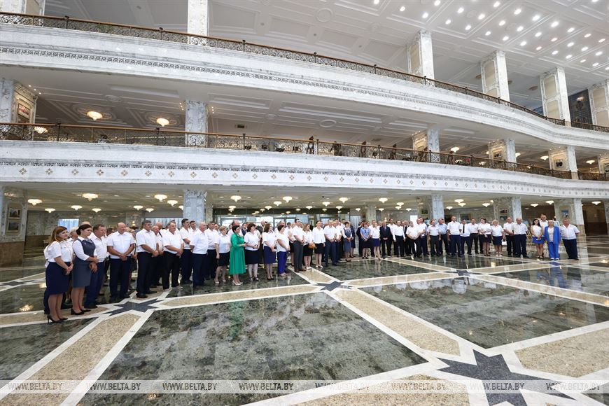 16 августа, Минск /Корр. БЕЛТА/. Представители трудовых коллективов Белорусской железной дороги, отмеченные в прошедший недавно профессиональный праздник высшими отраслевыми наградами, были приглашены на экскурсию во Дворец Независимости, сообщает БЕЛТА.