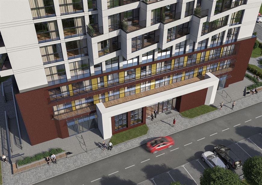 В стилобате, расположенном на удалении 6 метров от дома, запроектированы 5 имеющих отдельные входы коммерческих помещений — место для старта успешного бизнеса, где откроются уютные кофейни или магазины, фитнес-центры или аптеки, уже пользующиеся популярностью не только у жителей многофункционального комплекса Minsk World, но и у гостей из других районов столицы.