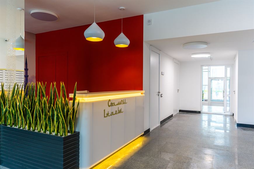 А что в сквозных подъездах? Здесь вы увидите благоустроенное лобби с красивой картиной, на которой изображены достопримечательности одной из мировых столиц. Стойка консьержа, место отдыха для гостей, букшеринг, санитарная комната, где предусмотрен пеленальный столик для малышей.