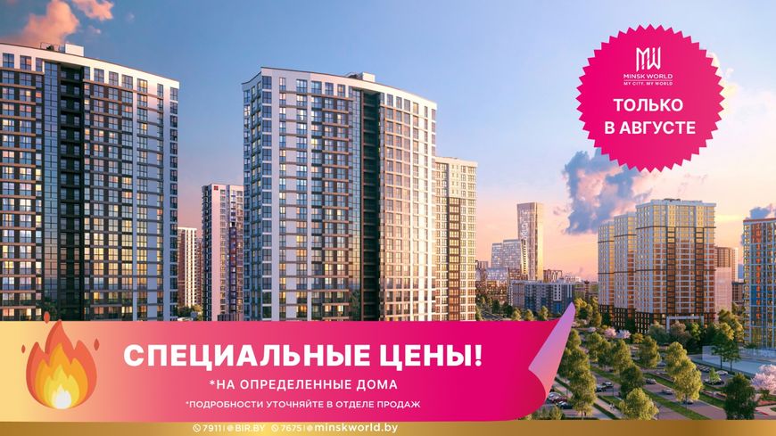 Успейте сделать выгодную инвестицию в м² престижной недвижимости с высоким потенциалом роста. Еще целых две недели, в преддверии сентябрьского повышения цен, у вас есть возможность получить скидки на готовые и строящиеся объекты в Minsk World и воспользоваться