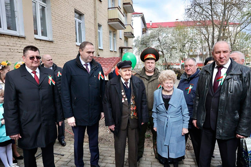 Фронтовикам были адресованы теплые и искренние слова благодарности за вклад в Великую Победу, за мирное небо родной Беларуси. Военный оркестр 6-й отдельной гвардейской механизированной бригады исполнил под окнами их домов мелодии и песни военной поры.