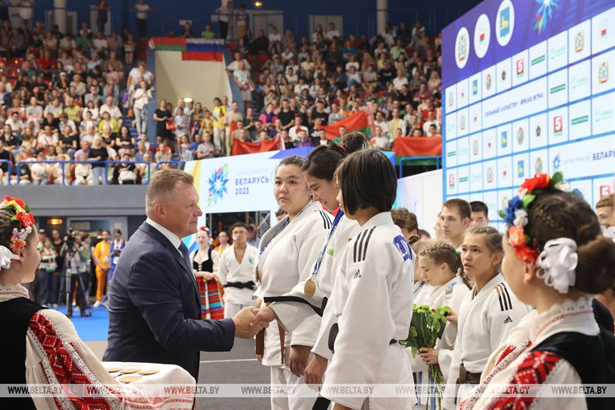 Финальные спарринги прошли в присутствии почетных гостей. Сразу три олимпийца следили за тем, как вступают ребята: российские дзюдоисты олимпийские чемпионы Тагир Хайбулаев и Беслан Мудранов, а также белорусский дзюдоист олимпийский чемпион Игорь Макаров. С интересом наблюдал за юными спортсменами председатель Попечительского совета Белорусской федерации дзюдо, министр по чрезвычайным ситуациям Вадим Синявский.