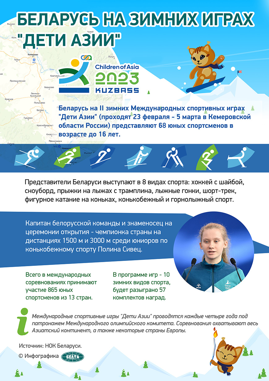 Таким образом, в активе наших атлетов уже пять наград II зимних Международных спортивных игр "Дети Азии": две серебряные и три бронзовые. В сумме на соревнованиях в Кузбассе разыгрывается 57 комплектов медалей в 10 видах спорта. Команду Беларуси представляют 68 атлетов в восьми видах, всего участие в играх принимают более 850 юных спортсменов из 12 стран.-0-
