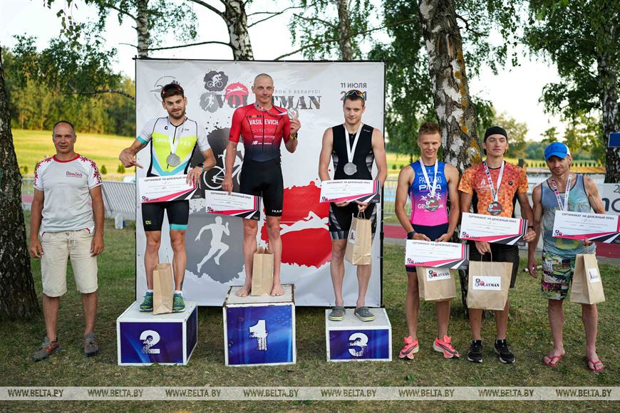В чемпионате Беларуси на средней дистанции спортсмены проплыли 1900 м, преодолели 90 км на велосипеде и пробежали 21 км. У мужчин победу одержал Александр Василевич, а среди женщин чемпионкой страны стала Анна Максимова.