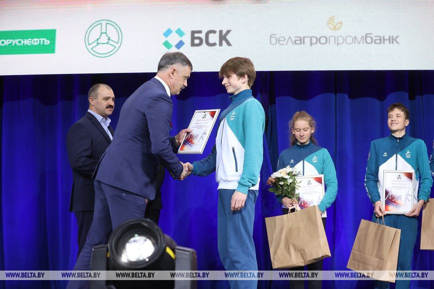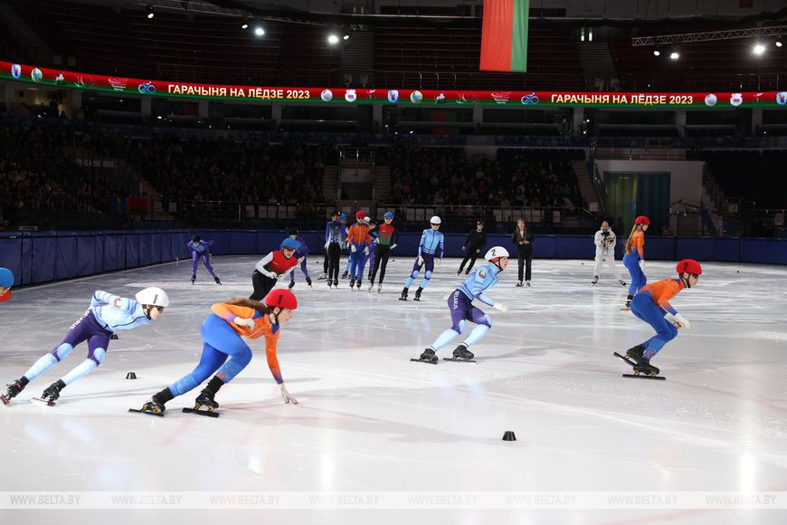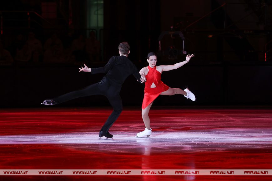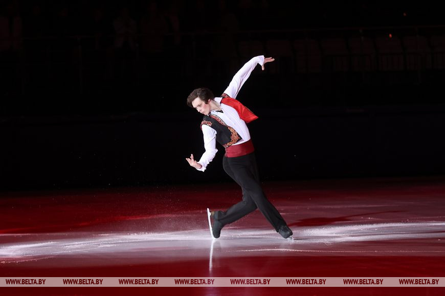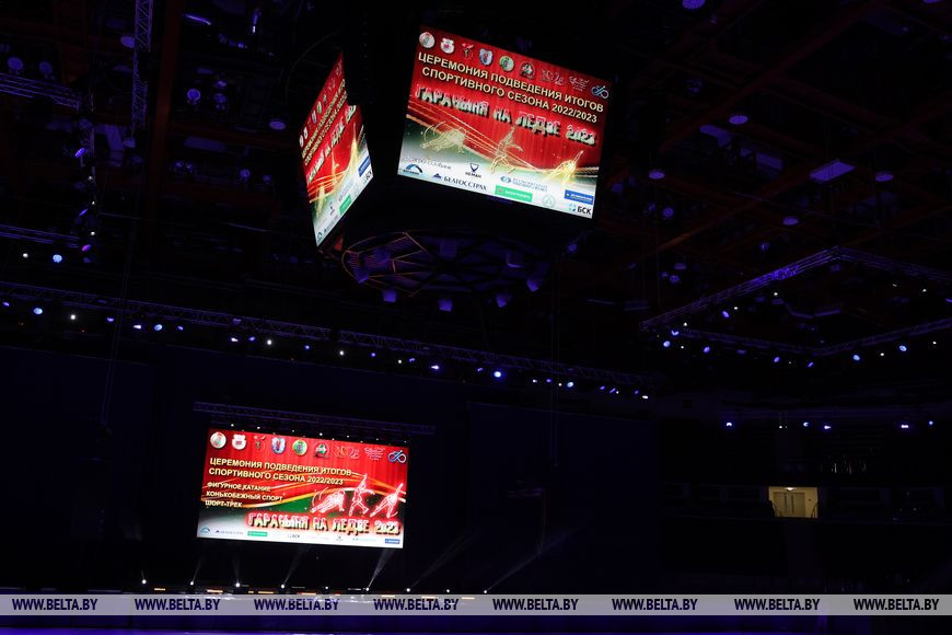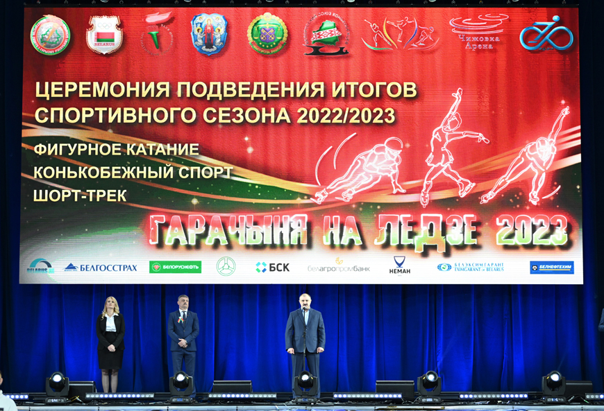 5 мая, Минск /Корр. БЕЛТА/. В "Чижовка-Арене" прошла церемония подведения итогов спортивного сезона 2022/2023 "Гарачыня на лёдзе", которую организовали Белорусский союз конькобежцев совместно с Министерством спорта и туризма и Национальным олимпийским комитетом Беларуси. Зрители увидели показательные соревнования по шорт-треку и выступления сильнейших фигуристов. Также в рамках события провели чествование лучших спортсменов и специалистов сферы. Впервые в "Гарачыні на лёдзе" приняли участие артисты Национального академического Большого театра оперы и балета Беларуси.-0-