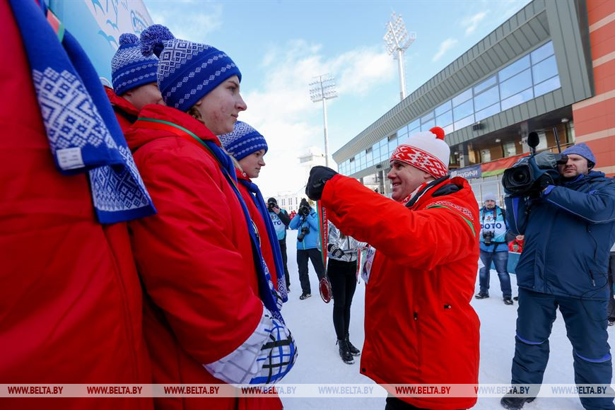 14 февраля, Минск /Корр. БЕЛТА/. В республиканском центре олимпийской подготовки по зимним видам спорта "Раубичи" вручили награды победителям республиканских стартов среди детей и подростков по биатлону "Снежный снайпер" на призы Президентского спортивного клуба. Призеров поздравили заместитель председателя Мингорисполкома Артем Цуран, министр спорта и туризма Сергей Ковальчук, министр образования Игорь Карпенко, вице-премьер Игорь Петришенко. - 0-