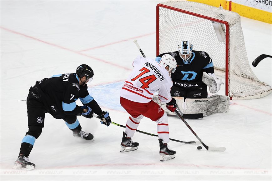 Игроки "Динамо" упорно искали путь к воротам гостей, которые сделали ставку на острые контратаки. Незадолго до финальной сирены Дэнни Тэйлор покинул ворота. Минчане взяли тайм-аут, заперли соперников в их зоне, но от поражения, к сожалению, не ушли.-0-