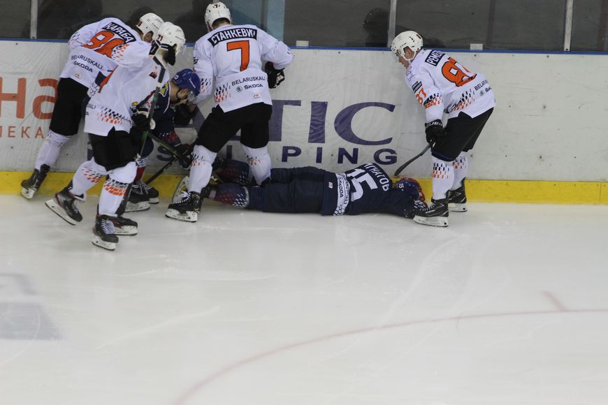 Солигорчане начали бодро, открыв счет на первой минуте встречи. Отличился Никита Ремезов. Прошло совсем немного времени, как Роман Крикуненко удвоил преимущество "горняков", когда его команда играла в большинстве пять на три. После этого гости успокоились. Игроки "Металлурга", напротив, усилили натиск. В итоге сначала отличился Сергей Кузнецов, а затем счет сравнял Дмитрий Заламай.