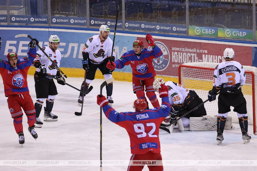 В центральном матче дня лидер турнирной таблицы "Шахтер" на выезде встречался с "Юностью". Первая половина игры прошла под диктовку столичного клуба: счет был открыт уже на третьей минуте, к перерыву хозяева были впереди - 3:0, а в начале следующего периода перевес минчан вырос до четырех шайб. За оставшееся время "горняки" сумели отыграть только часть отставания, попутно пропустив еще раз. Как итог - 2:5, солигорчане терпят первую неудачу на старте чемпионата.