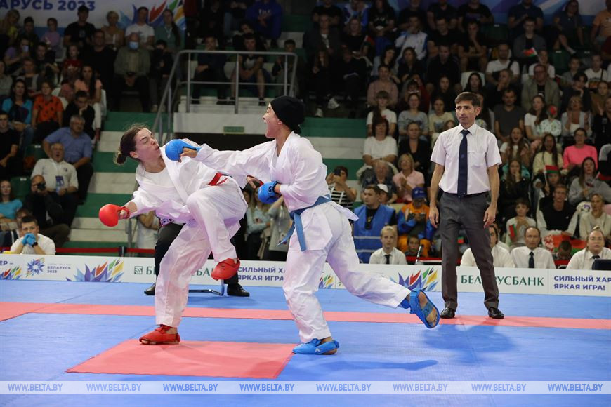 Сегодня в Могилеве проходит второй соревновательный день по карате в программе II Игр стран СНГ. На татами - конкурентная и напряженная борьба, в зале - незабываемая атмосфера поддержки и единения. К слову, первый соревновательный день подарил белорусской команде пять медалей. Наши каратисты завоевали два серебра и три бронзы.-0-